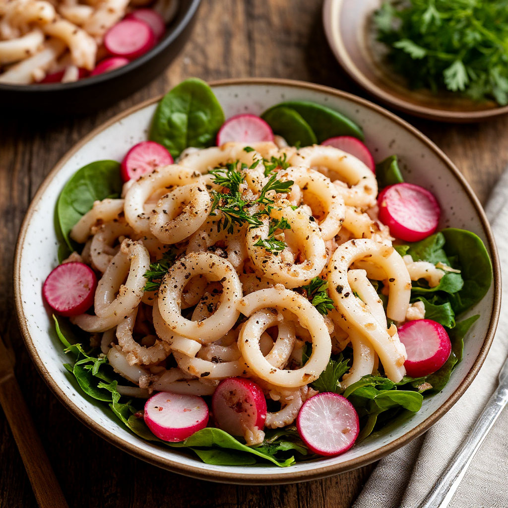 Нарежьте кальмара тонкой соломкой. - Цитрусовая заправка: