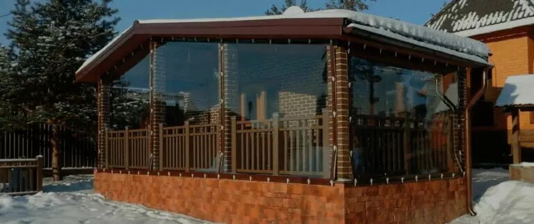 Гибкие окна помогают поддерживать комфортный микроклимат внутри беседки, защищая от холода, осадков и ветра.