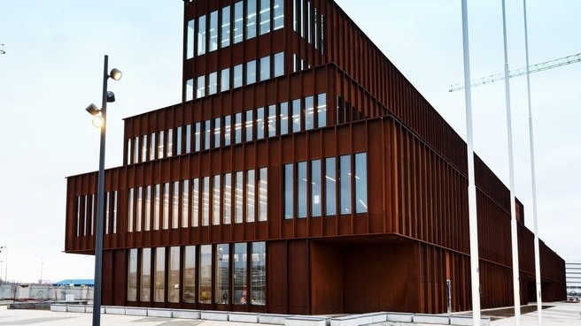 Здание оснащено современным театром-трансформером, коворкингом, зонами отдыха и медиатекой. Фасад украшен уникальным материалом — кортеновской сталью, отличающейся высокой стойкостью к агрессивному климату региона.