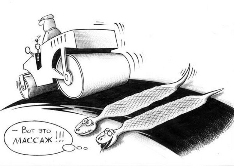 Минимализм становится инструментом и для других авторов. Лаконичные зарисовки, выполненные карандашом или тушью, умещают целые истории в один кадр. Художники улавливают суть комичной ситуации, отсекая всё лишнее. Например, выражение лица клиента, внезапно осознавшего, что «расслабление» может быть слишком интенсивным, говорит само за себя.