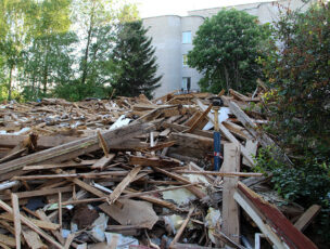 В Балаково в начале марта начался снос домов, которые расселили по программе ветхого и аварийного жилья. Напомним, сносить больше 50 домов без аукциона администрация отдала муниципальному похоронному «Комбинату благоустройства». Глава Балаковского района Сергей Барулин говорил. Что так Комбинат заработает на технику. Демонтаж домов закончен, но горы мусора лежат на улицах. Свалки тянутся на целые кварталы. И это большей частью деревянные доски, так как сносили «клопятники». Такая картина на сегодняшний день на улице Механизаторов и на улице Академика Жук. Горы мусора лежат возле здания Балаковского районного суда справа и слева. Напротив здания МУ МВД «Балаковское». И прямо перед зданием прокуратуры города Балаково. Прокуроры видят все это не первую неделю, когда идут на работу или просто выходят к крыльцу подышать свежим воздухом, с кем-нибудь пообщаться в неформальной обстановке. Можно ли представить, чтобы такие свалки на недели после своей работы оставили частные подрядчики, а не м