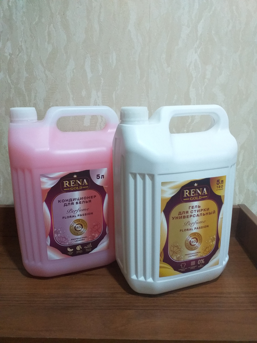 20.05.2025 Друзья, приветствую Вас на своем канале "Моя жизнь". Как все же удобно покупать на маркетплейсах! Учитывая, что пункт выдачи находится в соседнем дворе, даже идти никуда не надо. Покупки я делаю в основном на плодов-ягодном сайте и на Озоне, сказать какой больше люблю не могу. Все зависит от того удачная была покупка или нет. В мае я основательно закупилась бытовой химией на обоих сайтах! Что больше всего расходуется? У меня средства для стирки и средства для мытья посуды. Вот их то я и купила! Средства для стирки я предпочитаю покупать в больших канистрах, так гораздо выгоднее, да и длительное время можно ни о чем не думать. Главное, что бы место для хранения было! У меня имеется. Итак, что же я купила... Парфюмированный гель для стирки RENA GOLD PERFUME FLORAL PASSION, а так как я люблю использовать кондиционер, то и кондиционер этой же марки. Марка для меня абсолютно новая и как долго она на рынке сказать не могу. Но как показывает практика, новые средства всегда более