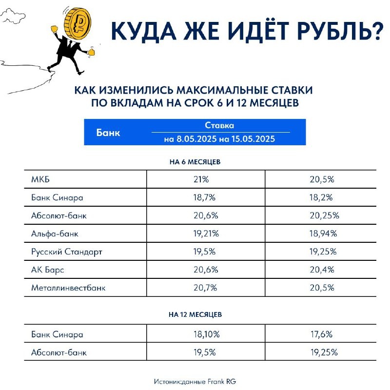 💸 Рубль пошёл в банки: россияне копят, а не тратят — что это значит для рынка недвижимости? 🛍 Вместо шопинга — вклады. Всё больше россиян пересматривают свою потребительскую модель: сокращают траты на одежду, обувь и мебель, отдавая предпочтение банковским депозитам. 📉 Торговые сети бьют тревогу: по итогам первых трёх месяцев 2025 года крупнейшие ритейлеры готовятся к миллиардным убыткам. Kari — минус 6,4 млрд ₽ Спортмастер — минус 12,2 млрд ₽ Твое — минус 1,4 млрд ₽ Подружка — минус 1,7 млрд ₽ Hoff — минус 1,3 млрд ₽ Ostin — минус 458 млн ₽ 📉 Покупки одежды и обуви за январь–март упали на 12% по сравнению с прошлым годом. Также значительно сократились расходы на мебель и товары для дома. 🏦 Но рубль не простаивает: объём средств населения на вкладах достиг 57,9 трлн рублей. Люди копят и это может создать волну отложенного спроса. 📊 Предлагаем вам в инфографике выше ознакомиться с актуальными ставками по вкладам в крупнейших банках — полезный ориентир, если вы тоже пока заня