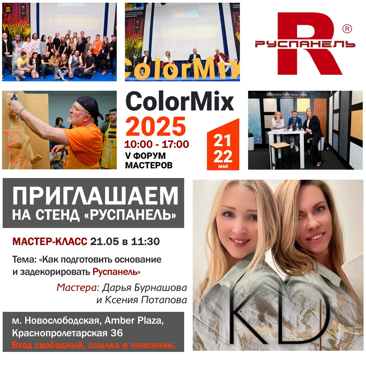 21 и 22 мая Руспанель участвует во всероссийском форуме ColorMix 2025, который собирает профессионалов рынка отделки в одно место и в одно