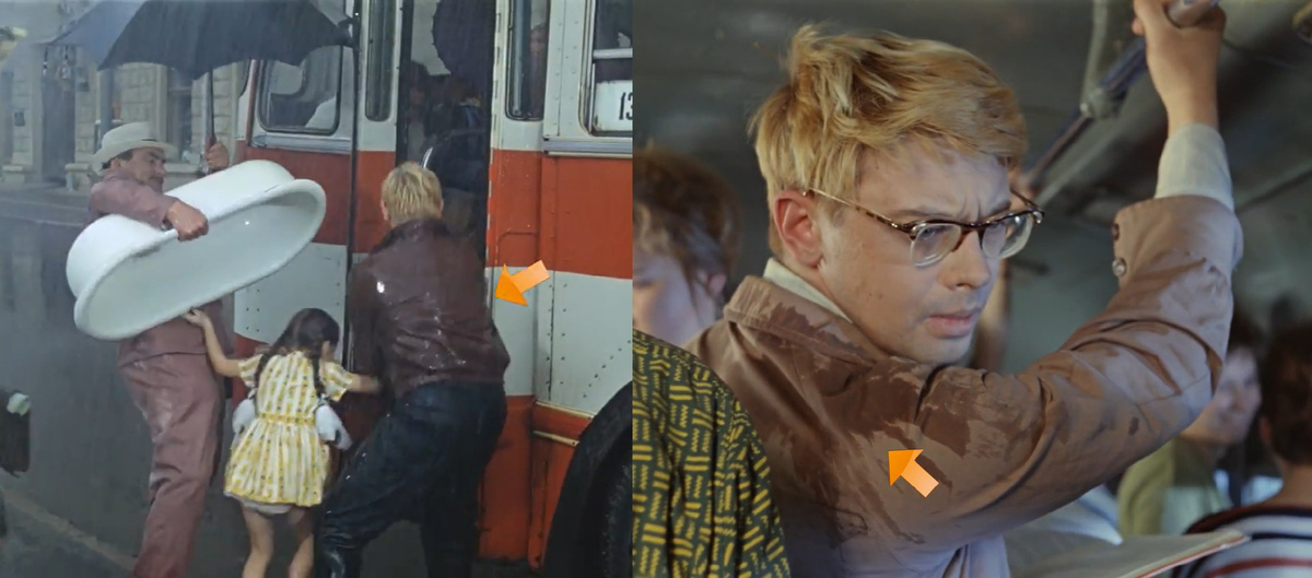 Если хотите узнать больше — вторая часть расскажет о ляпах в интерьерах и монтаже! Подписывайтесь, чтобы не пропустить. Мокрый насквозь → абсолютно сухой через пару секунд. Где фен, Шурик? 😄 Улетели в окно — но чудесным образом вернулись в следующий кадр. Надпись "Хочу на Луну" то меняет шрифт, то слегка съезжает. Что, передумал? "Алкоголики, хулиганы, тунеядцы" мгновенно сменили построение. Кадр явно переснимали несколько раз. После бочки на брюках пятна, но уже через пару секунд — чистота. Хлеб был один, а стал другой. Походу, в кадре он вспух от волнения. Размер дырки на штанах Феди гуляет от кадра к кадру. То скромная, то эпичная. Убрана полностью, потом торчит наполовину. Было одно — стало много. Кадр явн