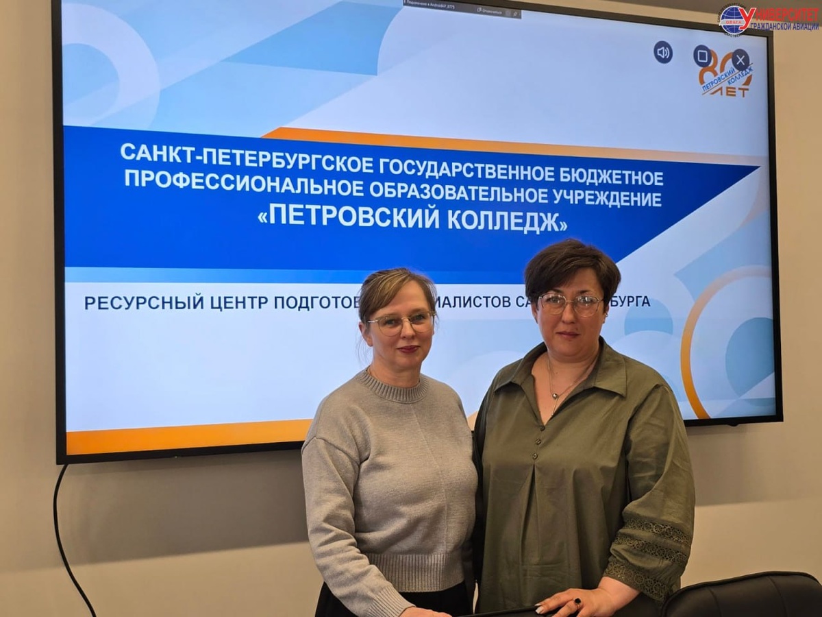 15 мая декан факультета транспортных систем и безопасности Оксана Вадимовна Максимова и доцент кафедры № 8 «Прикладной математики и информатики» Светлана Вячеславовна Удахина приняли участие в мероприятии Единого дня открытых дверей ресурсных центров Санкт-Петербурга. Встреча прошла на площадке СПб ГБПОУ «Петровский колледж». Участники обсудили способ оптимизации рабочего пространства пользователя путем внедрения цифровых технологий в инструменты бережливого управления. Совместными усилиями участников были разработаны и представлены методические рекомендации по применению инструментов бережливого управления в образовательной среде, а также концепции и макеты: — цифровых личных кабинетов студентов и сотрудников, включая методики их внедрения; — цифрового кабинета руководителя, обеспечивающего доступ к актуальной информации в режиме реального времени, а также позволяющего оперативно принимать управленческие решения и разрабатывать стратегии развития учреждения.