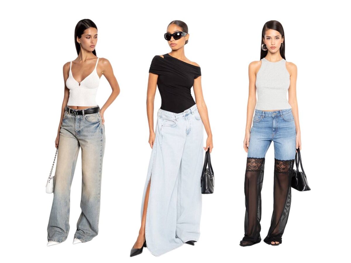 Широкие джинсы на запах — дерзкий крой добавляет динамики образу. Сочетайте с мюлями и рубашкой, чтобы сохранить лёгкость и баланс.