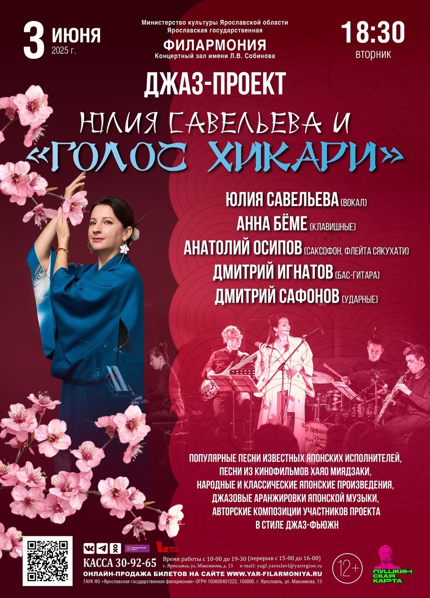 3 июня 2025 г. в 18:30 в музыкальном проекте «Голос Хикари» будет представлена программа, в которой теплый тембр Юлии Савельевой сливается с импровизациями флейты сякухати, саксофона и ритмами ударных, напоминающих бой японских барабанов тайко. https://clck.ru/3MBG8P