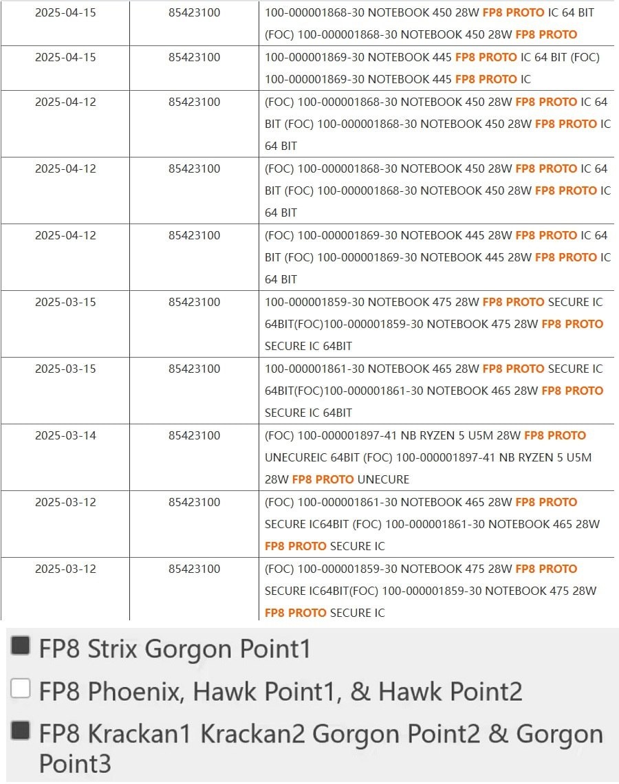 В грузовых накладных засветились ноутбучные процессоры AMD Ryzen AI 400 серии под кодовым именем Gorgon Point: Ryzen 9 475, 465, Ryzen 7 450