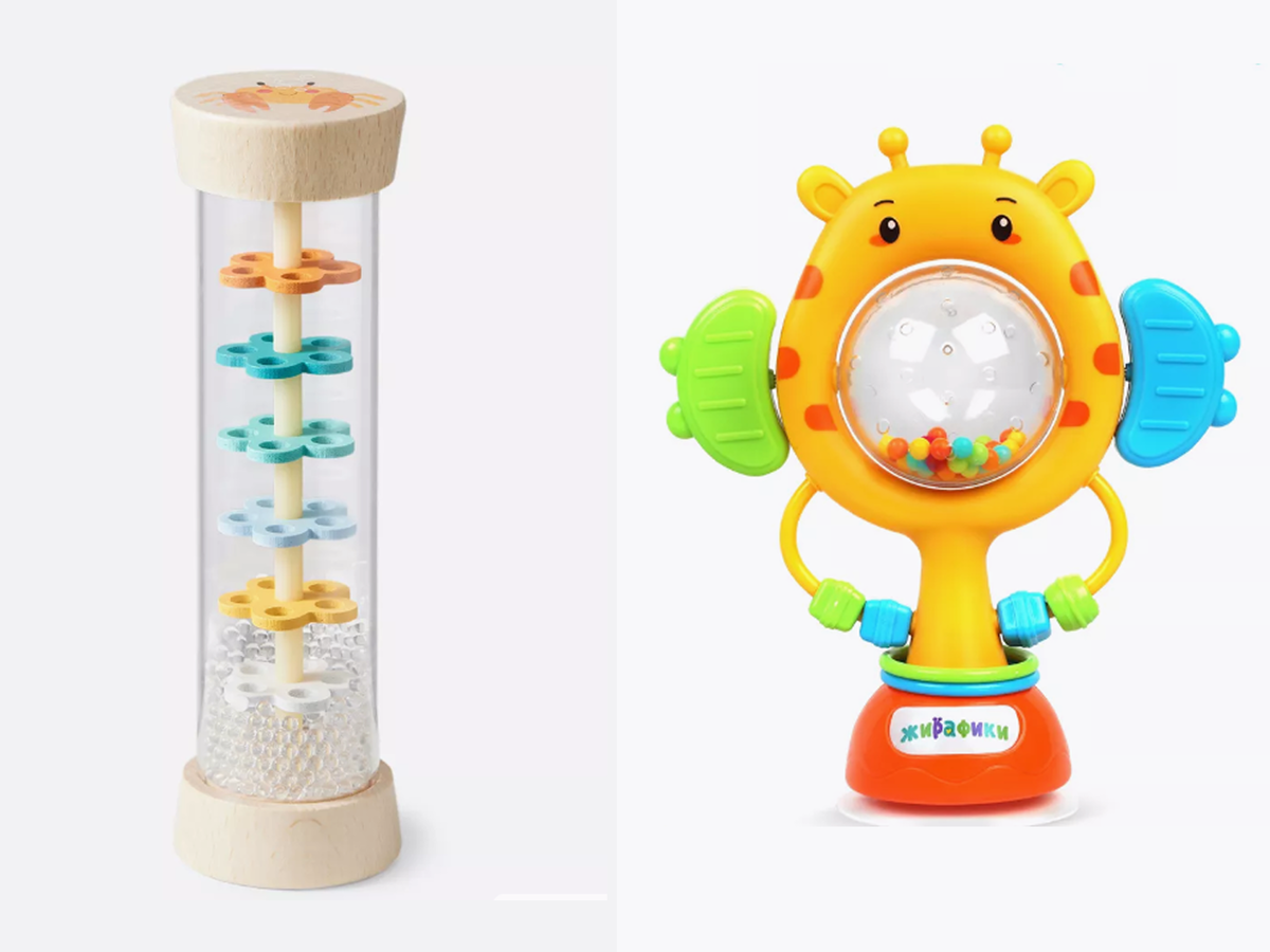 Такие погремушки стимулируют малыша схватить их, вертеть в ручках, разглядывать.