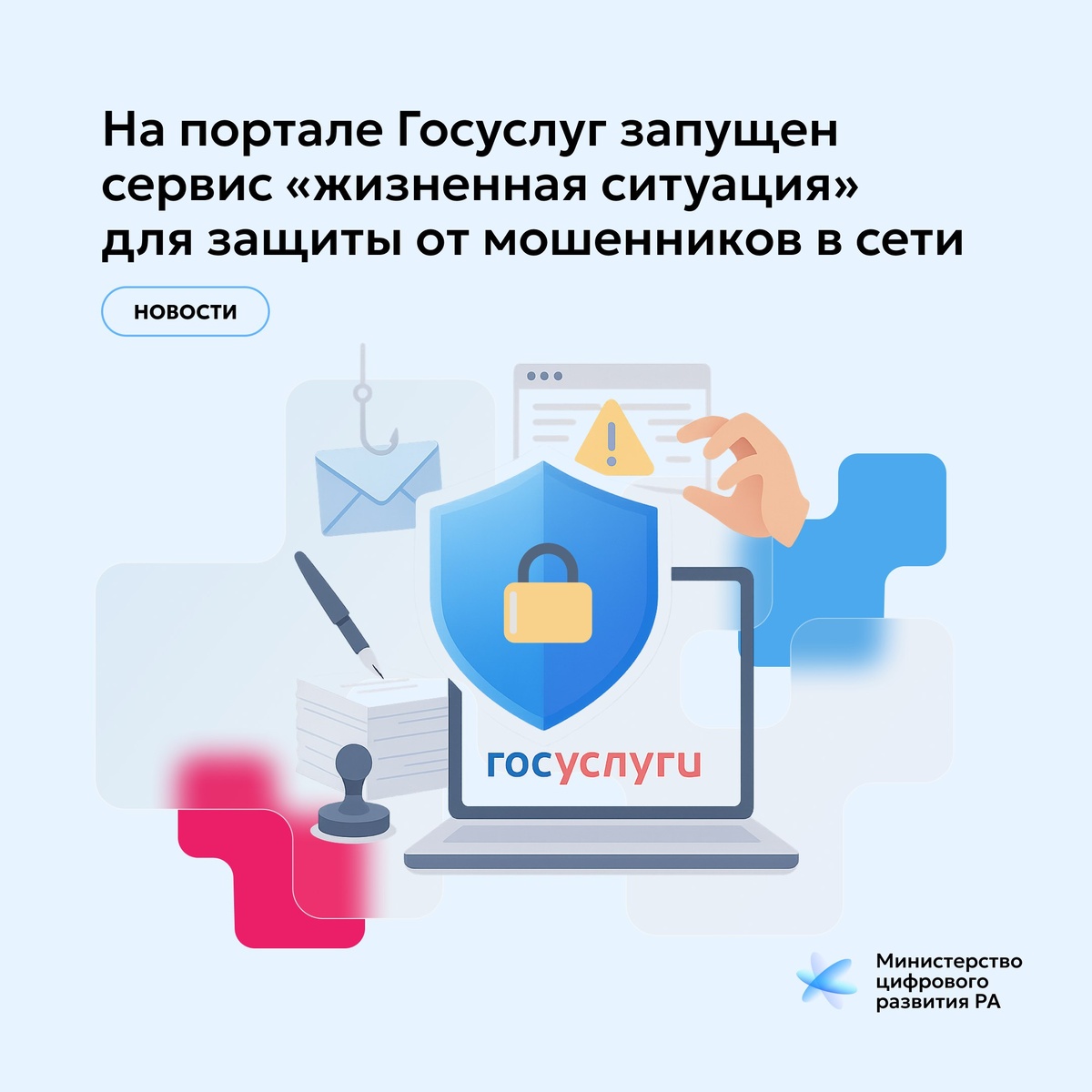 На портале запущен новый сервис «Жизненная ситуация», направленный на защиту граждан от кибермошенничества. Он предоставляет информацию как для тех, кто уже стал жертвой мошенников, так и для пользователей, которые стремятся повысить свою цифровую грамотность и избежать взаимодействия с киберпреступниками.