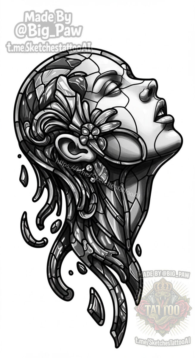 #2430 Подборка по запросу подписчика - попробуй сделать что то подобное, вместо узоров можно попробовать наложить витражи 😎 непонятно каким образом должны быть наложены витражи, по описанию получилось так 🧠 SYNTX 💳 Донат 😎 НейроБро 😎 Эскизы без вотера 💀 Эскизы от нейросети #витражи #девушка #реализм #эскизы #тату #татуировки