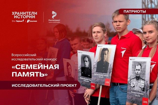 Федеральным государственным бюджетным учреждением «Роспатриотцентр» совместно с Общероссийским общественно-государственным движением детей и молодежи «Движение первых» и Всероссийским детско-юношеским военнопатриотическим общественным движением «ЮНАРМИЯ» проводится Всероссийский исследовательский конкурс «Семейная память». Участниками конкурса могут стать обучающиеся общеобразовательных организаций 5-11 классов и студенты профессиональных образовательных организаций (не старше 18 лет на момент проведения финала конкурса). Подробнее на сайте https://clck.ru/3MBKwF