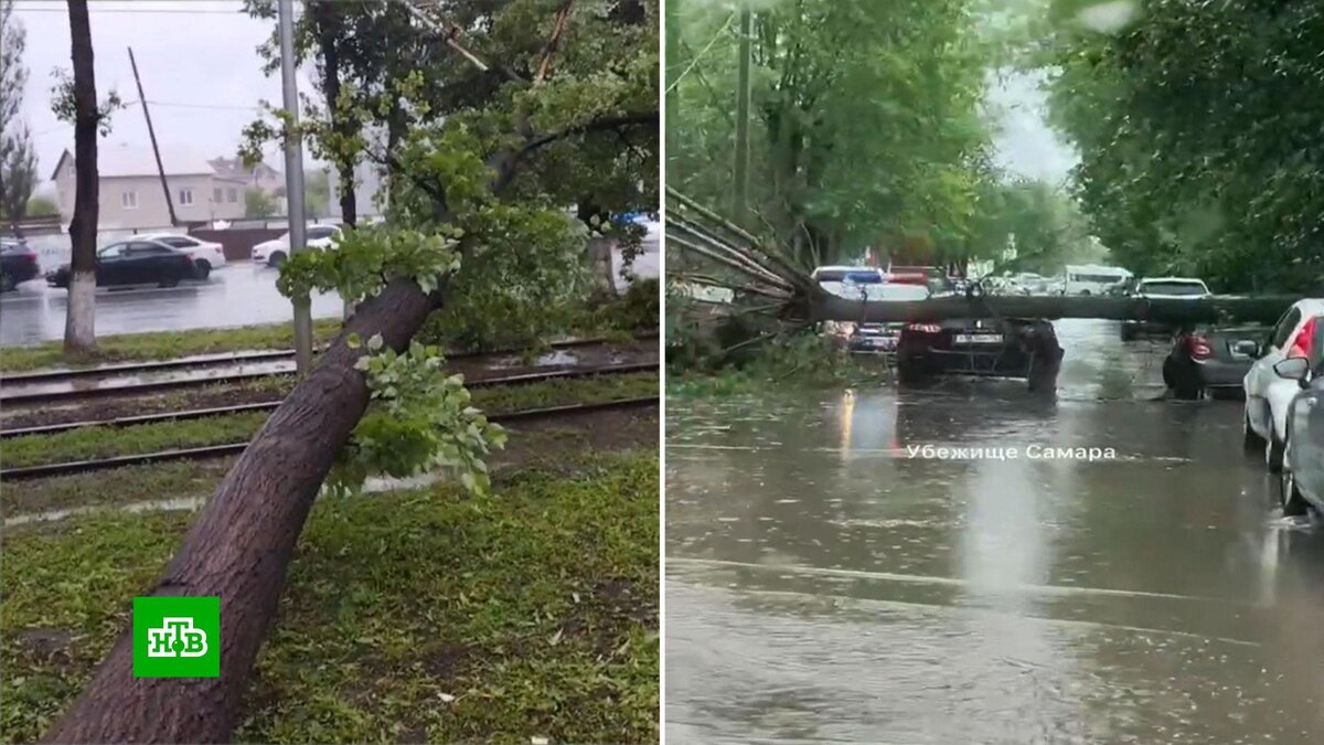 [ Смотреть видео на сайте НТВ ] Самарская область сегодня оказалась во власти непогоды. На регион обрушился штормовой ветер с дождем. В столице региона несколько деревьев не выдержали натиска стихии и рухнули на проезжую часть дороги, припаркованные автомобили и трамвайные пути. Горожане сообщают об упавших остановочных павильонах, рекламных конструкциях и дорожных знаках. Данных о пострадавших нет. Движение пригородных речных судов по Волге было временно приостановлено. В Сызрани за ночь выпало 122 процента месячной нормы осадков. [ Смотреть видео на сайте НТВ ]