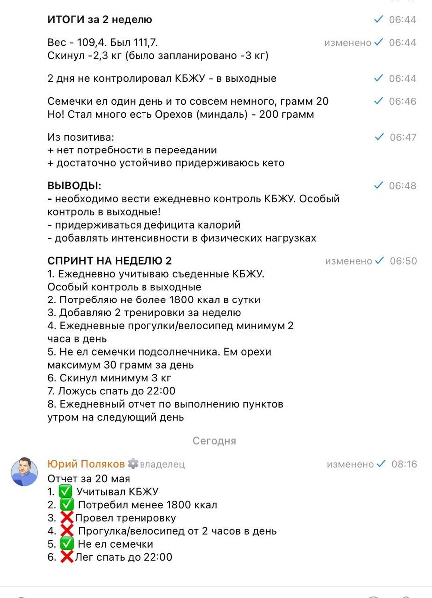 О личном и «больном» Я опытный похудалец, уже наверное раз 7 кардинально менял свое тело. Рекорд в похудении -38 кг. Уже всех своих внутренних демонов знаю в лицо и на ты с ними - компульсионное переедание, гиперкомпенсация недостатка эмоций едой и пр. Ну и в очередной раз снова взялся за себя. И решил по максимум использовать свою ключевую силу - алгоритмизация, учет, анализ Ну не просто так - я же инженер-маркетолог! Ставь лайк, если ожидаешь от меня периодических публикаций про борьбу со своими слабостями!