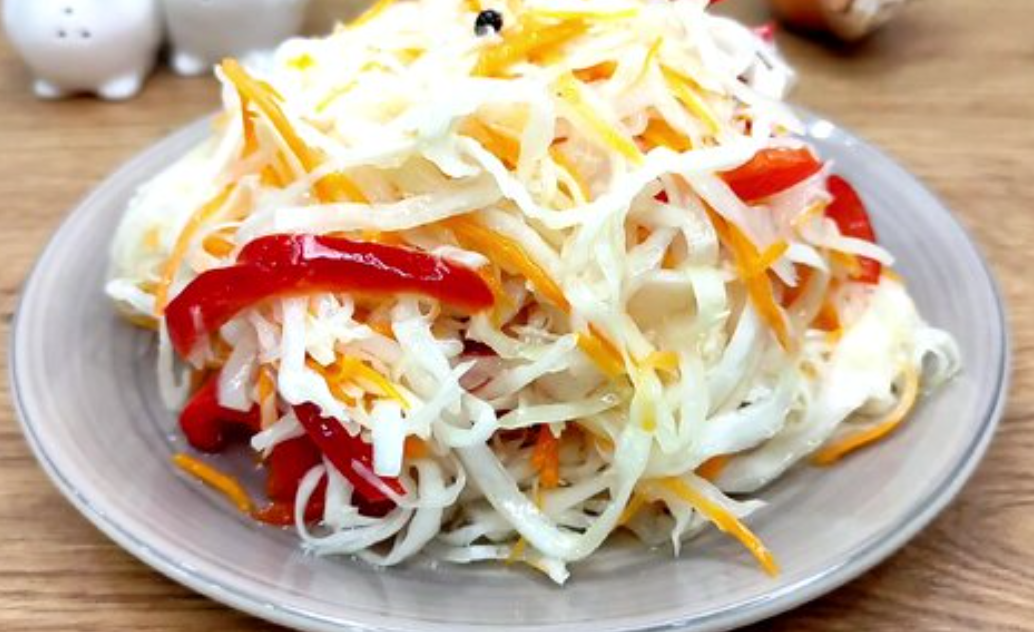 Всем привет! Помните этот вкус — как в школьной столовой или заводской столовке из детства? Хрустящая капуста, чуть сладковатый маринад, лёгкая кислинка и аромат лаврового листа. Такой салат всегда подавали к пюре с котлетой или к макаронам. И знаете, я до сих пор его обожаю — настолько он простой и в то же время гениальный! Теперь готовлю его дома круглый год. Причём не только для себя — когда делаю в большой миске, он моментально исчезает. Отлично стоит в холодильнике 3–4 дня и становится только вкуснее. А главное — минимум усилий и бюджетные продукты. Ингредиенты: Как готовлю: Капусту шинкую тонкой соломкой. Морковь натираю на крупной тёрке, перец режу соломкой. Всё перемешиваю в большой миске. В кастрюле довожу до кипения воду, добавляю соль, сахар, масло, перец горошком и лавровый лист. В самом конце вливаю уксус. Горячим маринадом заливаю капусту с овощами. Сверху ставлю тарелку и груз — можно банку с водой. Оставляю при комнатной температуре на 5–6 часов. Всё — салат готов! Посл