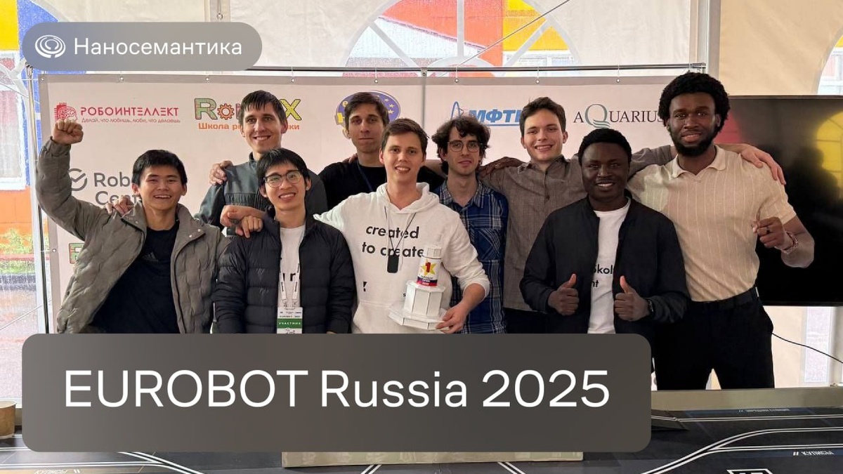⭐️ «Наносемантика» поддержала команду-чемпиона Сколтеха на EUROBOT Russia 2025 Поздравляем команду ReSet Лаборатории интеллектуальной космической робототехники Сколтеха с очередной победой. 4 мая ребята в девятый раз стали чемпионами России в соревнованиях автономных роботов EUROBOT. 🚀 Что сделала команда? ▪️ Создала несколько типов роботов для выполнения задания «робо-рок-тур». ▪️ Разработала сценического робота для выступлений. ▪️ Спроектировала роботов для танцев и движений. ▪️ Построила масштабного робота для возведения трибун и сцены. Команда ReSet полностью обновляется каждый год и состоит из магистрантов-первокурсников. В этом году победу одержали студенты программы «Инженерные системы» под руководством Дмитрия Тетерюкова. Поддержка команды ReSet — одно из нескольких направлений, по которым сотрудничают «Наносемантика» и Сколтех. Команда Сколтеха является постоянным партнером компании последние несколько лет: ученые и научные сотрудники совместно работают над созданием комм