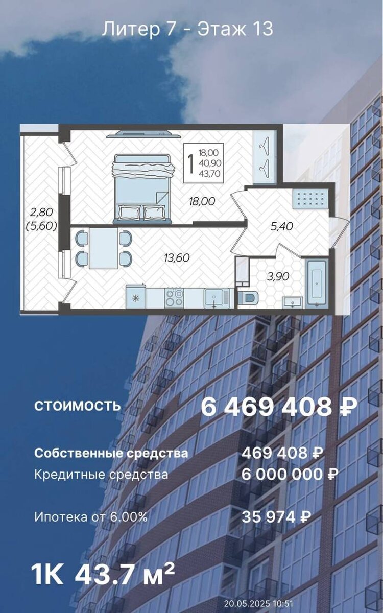 Последняя квартира в этом жилом комплексе (а комплекс очень хороший!) с частичным первоначальным взносом и ремонтом в подарок!