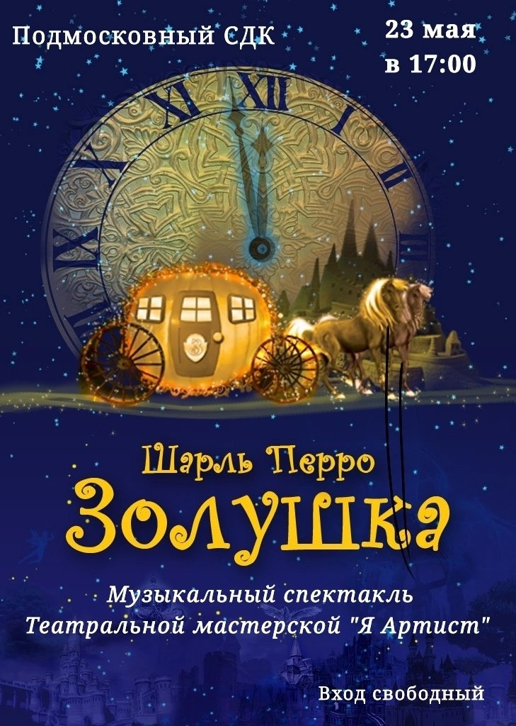 ✨ Приглашаем вас на Музыкальный спектакль 'Золушка" по мотивам сказки Шарля Перро. На сцену выйдут юные артисты Театральной мастерской "Я Артист" 🎭 и студии мюзикла "GO-music" 🎶 ✨ Продолжительность спектакля 30 минут. Приходите всей семьей! 📆 23.05.2025🕒17:00 🏢 Подмосковный сельский дом культуры (СДК) 📍 г.о.Домодедово, пос.санатория Подмосковье, д.9 💰 Вход свободный❗️ ✅ Мероприятия Домодедово https://dzen.ru/id/66f10385cc4c5a16f7b5fb02 http://vk.com/domodedovo_events http://dzen.ru/domodedovo_events