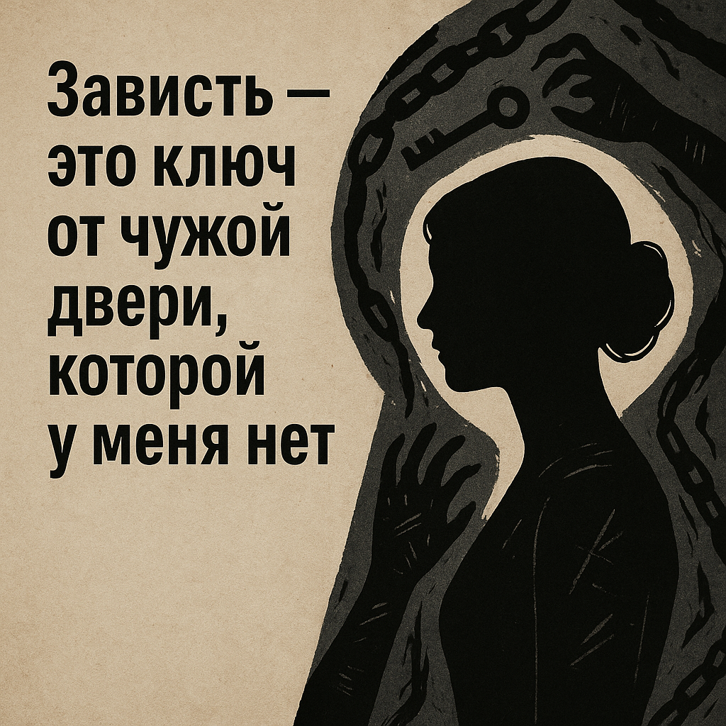 Зависть — это когда ты стоишь у чужой двери, трясёшь ручку, а потом с удивлением обнаруживаешь, что за ней — не бал, а кладовка с тараканами. Но ключ у тебя в руках. Ты сам его сделал. Сам вставил. Сам теперь в заложниках. Неловко вышло.