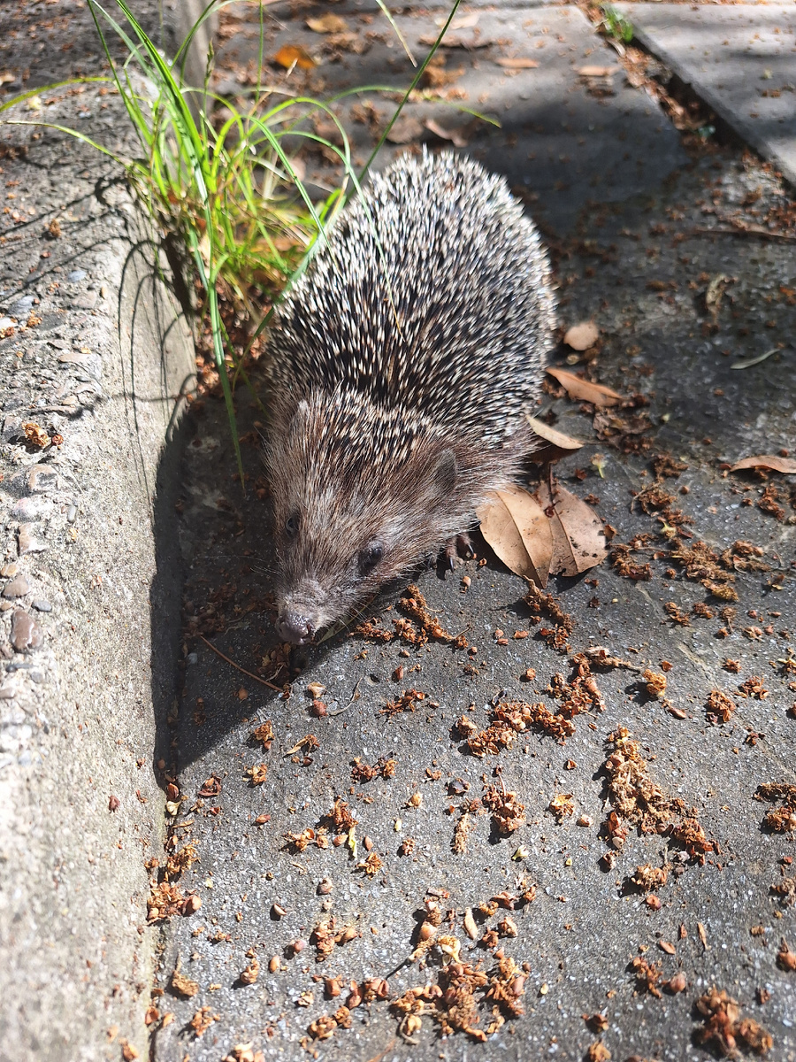 Первый раз увидела ежика утром. Наверное, он грелся на солнышке.