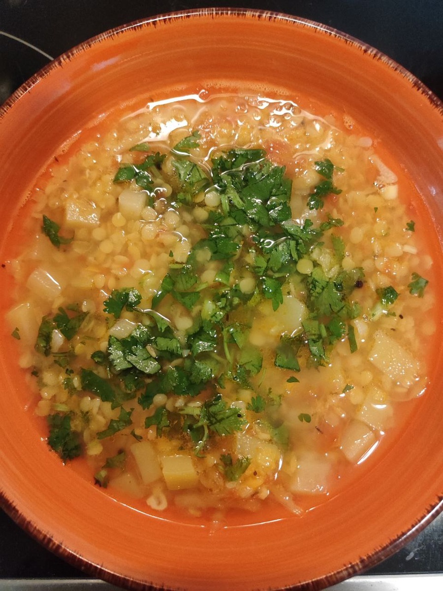 Продолжаю следовать своей противопростудной диете:)) Суп из красной чечевицы с овощами. Специи и сырой имбирь на борту:)) но можно сырой имбирь заменить на сухой Кто еще хочет сварить такой суп, но пока не имеет рецепта, ставьте "+" в комментариях, пришлю. Если надо рассказать почему такой суп может бороться с простудой, пишите "?" в комментариях, все объясню😊