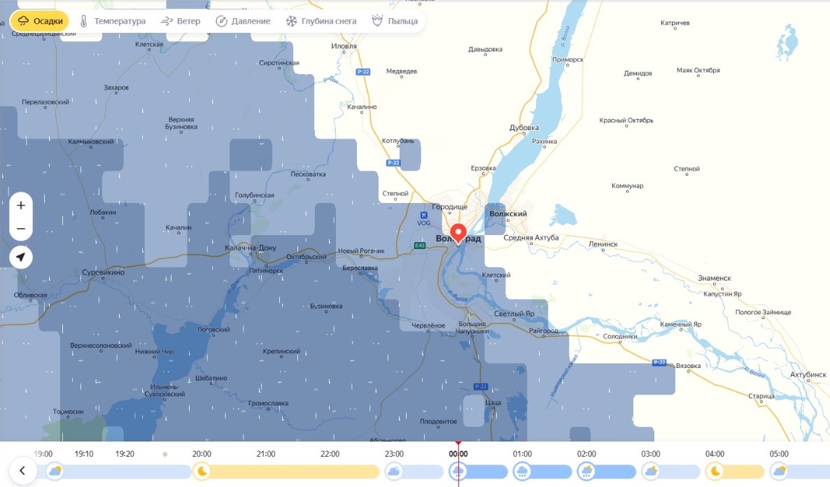 Сервис «Яндекс. Погода» показывает, что сильный дождь начнется в Волгограде после полуночи. К часу ночи все районы миллионника будут затянуты гигантской черной тучей, лить продолжит, что называется, по полной. К трем часам ночи непогода сбавит обороты, туча начнет рассеиваться и уходить в сторону севера нашей области, растянувшись от Новоаннинского района до Верхнего Баскунчака. К 4 часа утра дождь попытается взять передышку, освободив от себя пределы Волгограда. Ориентировочно, с 08:00 утра непогода подступит к нам с новой силой. Новая туча набежит со стороны Ростова. Это дождь будет продолжаться фактически всю первую половину дня, до 14:00 21 мая. Небольшие осадки в этот день прогнозируются в Волгограде и вечером.