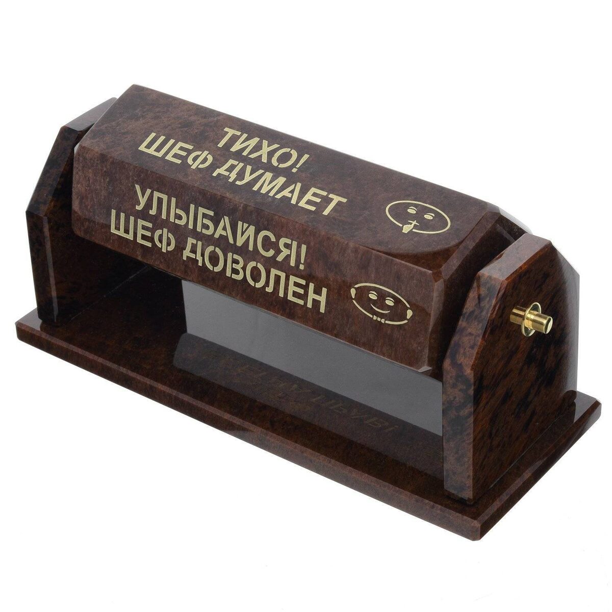 Если о начальнике мало что известно, стоит ограничиться деловым подарком. Кружка или плед с логотипом компании, фотокнига с историей развития предприятия, уникальные шахматы с фигурами работников – для каждого можно найти интересный вариант. Сюда же стоит отнести деловые аксессуары: сумку для ноутбука или кошелек из натуральной кожи, стильную папку для документов или футляр для очков.