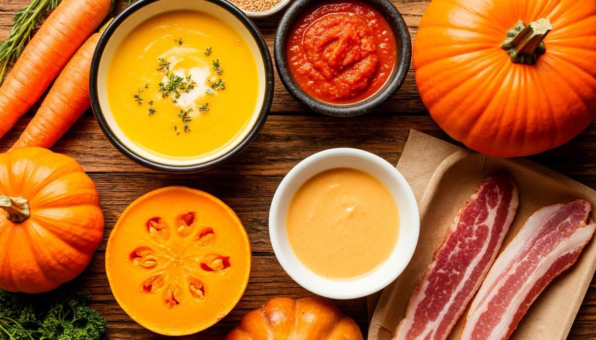 Сегодня приготовим с вами тыквенный крем-суп со сливками и беконом.