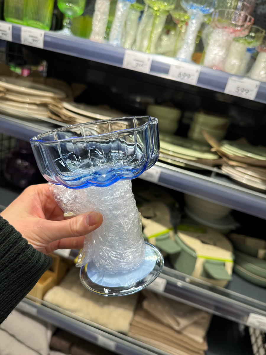Цены не сказать, что вау. Но модели акцентные. Подобные встречаются на WB😉 Сотрудница компании шепнула, что завтра они попадут в уценку😉 Кто? Бокалы, которые Вы сейчас увидите❤️ Цветочная тема)) Представлены в трех цветах. Помимо синих есть нежно-розовые. Как заботливо упакованы ножки. Цвет сочной травы🌿 Игристое в них будет изумительно. По цене: 599р Но не забываем, что серия бокалов, которые представлены не только в 3 цветах, но и трех вариантах формы завтра попадут в уценку. Высокие по 699р Снимала все великолепие в магазине, который находится рядом с метро Проспект Мира. ТЦ Олимпик Плаза. г. Москва. Только вот забыла спросить.. Акция распространяется на всю сеть магазинов Перекресток или на конкретно этот)) Вазы огромные!!! Дамчатые тоже хороши. Кружки из весенней коллекции попали в уценку. Интересный стакан с собой в грядущие жаркие деньки) К нему ещё и веселая цепочка в комплект. Ну, реально дух Pinterest даже здесь прослеживается) Веселая тарелка для тех, кто следит за фиг