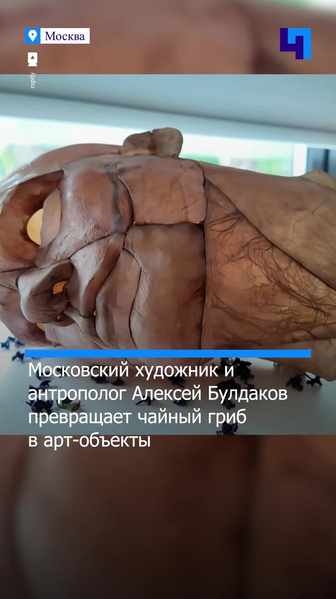 Московский художник и антрополог Алексей Булдаков создает скульптуры из…чайного гриба. Из знакомой многим симбиотической культуры он выращивает целлюлозу — природный полимер, который затем превращает в бюсты, черепа и головы животных. Процесс выращивания занимает около месяца и требует соблюдения множества условий: температуры, кислотности, крепости чая. Иногда партия портится, и всё приходится начинать заново. Материал получается прочным, гибким и долговечным. Булдаков считает, что его можно применять не только в искусстве, но и в промышленности, медицине и дизайне. Однако для самого мастера гриб — это прежде всего способ говорить с миром на языке первобытных образов. "Для меня это просто очень интересное выразительное средство как для художника. Он очень насыщенный смыслом и какой-то, вот… визуально очень интересный", — подчеркнул Булдаков.
