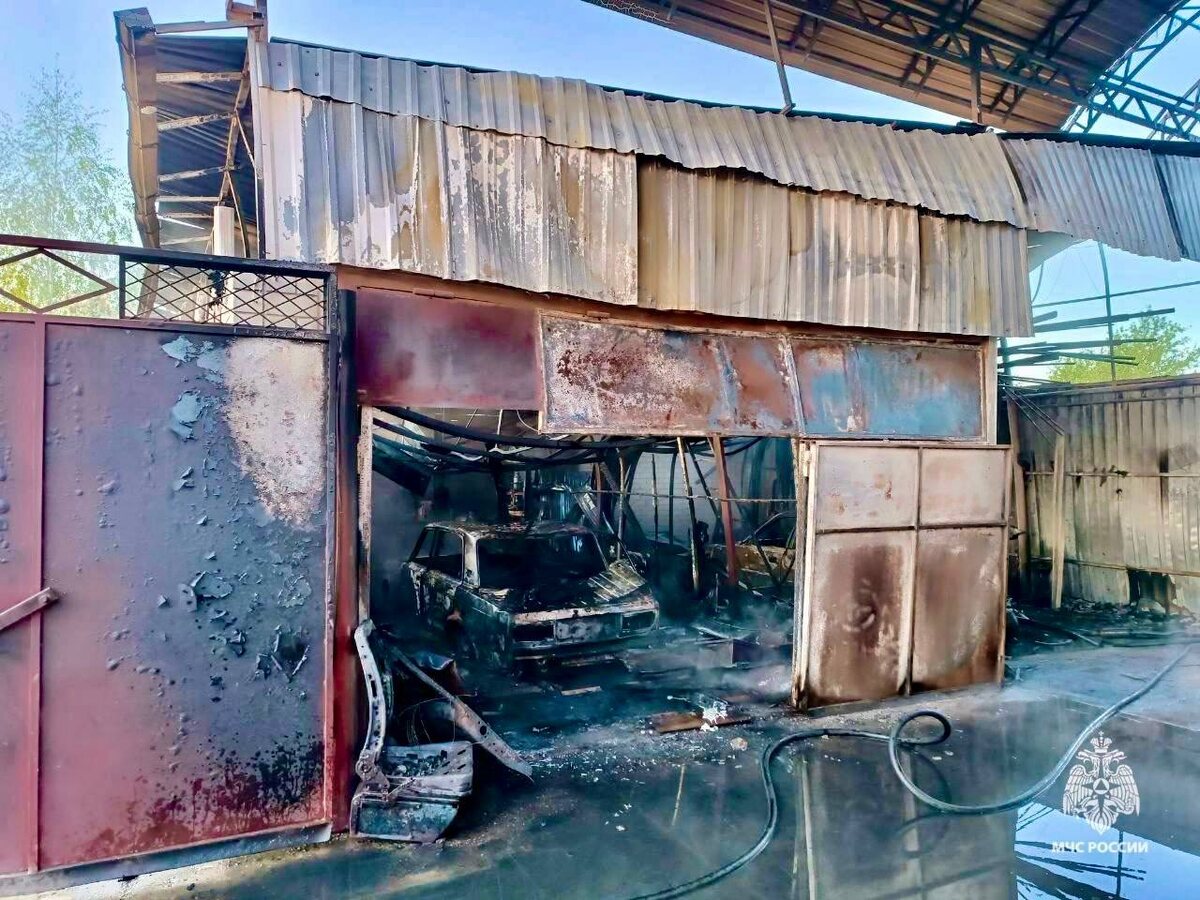 На Ставрополье пожарные тушили огонь в гараже с тремя машинами
