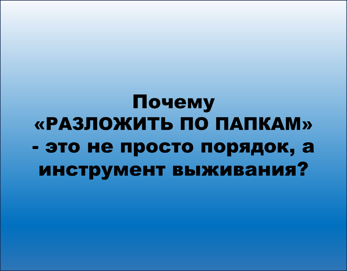 Порядок в голове начинается с порядка в файлах. Звучит банально, правда? Но на самом деле — это ключ к тому, чтобы не утонуть в задачах, не потеряться в дедлайнах и не закопаться в информационном шуме. И неважно, кто вы: учитель, делопроизводитель, родитель, программист или админ в образовательной системе — если у вас бардак в документах, у вас бардак в жизни. Мы теряем: Это как жить в доме, где каждый раз надо искать ключи, ботинки, ложку и полотенце. На самом деле — это нейропсихологический процесс: Организуя внешний беспорядок, мы успокаиваем внутренний хаос. Это особенно важно для: Ты можешь называть папки по-своему: «🦉Сова», «🔥Срочно» или «💡Идеи». Главное — чтобы мозг знал, куда положить и где взять. Порядок — это не педантизм, а поддержка для уставшего мозга. Здесь будут: 💬 Напиши в комментариях: