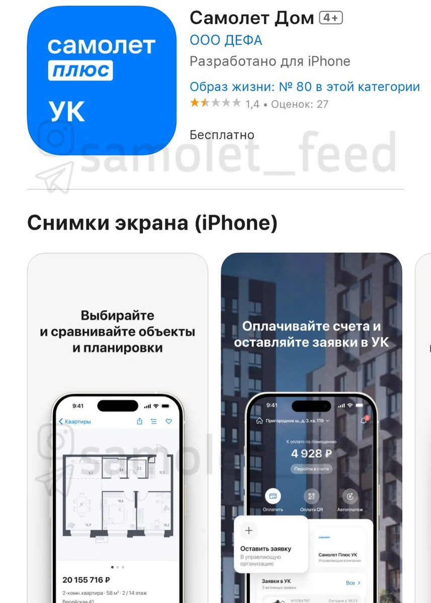 Как передавать показания счетчиков если у вас iPhone ? Приложение "Самолет плюс УК" пропало из App Store, но вместо него залили "Самолет Дом". Это тоже самое, просто для владельцев яблочных устройств. Ссылка на скачивание - https://vk.cc/cM85ex ________ Присылать новость @mstislavz 👉 Обсудить в чате ЖК 👉 Подписаться на канал