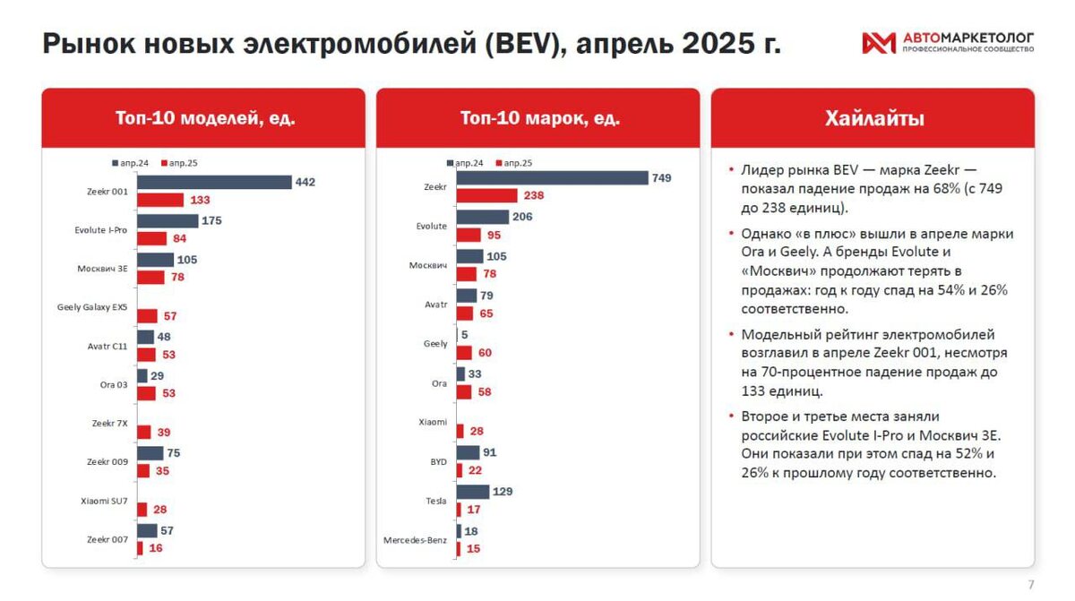 Несмотря на резкое падение продаж, Zeekr 001 сохранил звание самого популярного электромобиля в России в апреле 2025 года. Однако спрос на него упал на 70% по сравнению с тем же периодом 2024-го. Эксперты связывают это с насыщением рынка и появлением новых конкурентов.