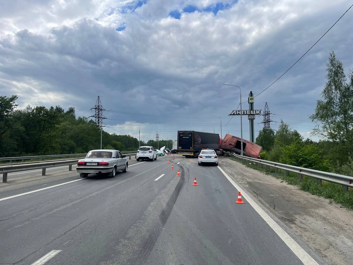 Сегодня на дороге Орел-Тамбов произошло массовое ДТП с большегрузом.