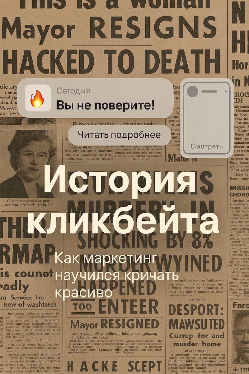 Сегодня «кликбейт» — почти ругательство. Так называют все, что выглядит как обман: громкий заголовок, за которым — пшик. Но по сути кликбейт — это не про ложь, а про умение зацепить внимание. А это искусство появилось задолго до интернета. Первыми настоящими мастерами были газетчики XIX века. Тогдашние заголовки — настоящий арсенал приемов, которые мы встречаем и сейчас: «Вы не поверите, кто…», «Этот человек сделал…», «Они не знали, что произойдёт…». Все это уже было, просто вместо кликов тогда были монеты за свежий выпуск. С развитием печати появилась конкуренция, и редакции начали экспериментировать: заголовки стали короче, громче, острее. Газета боролась за внимание, как сегодня борется пост в ленте. Люди проходили мимо газетных киосков, и каждый заголовок должен был остановить взгляд и вызвать эмоцию — удивление, тревогу, азарт. Удивительно, но уже тогда появлялись почти вирусные формулы: вопрос без ответа, шок без контекста, обещание разоблачения. Чем абсурднее — тем больше читате