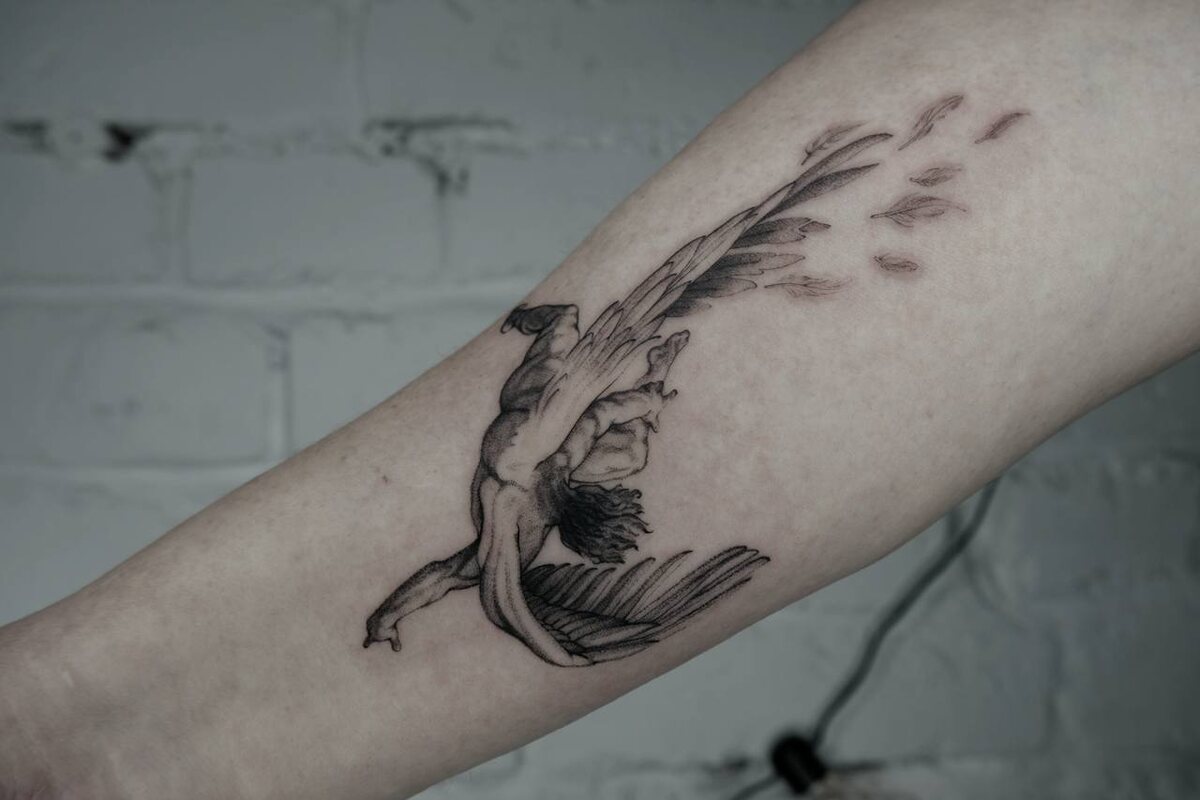 «Он когда-то касался небес, но выбрал свободу… ✨ Тату "падший ангел" — не просто рисунок, а история. О противостоянии, силе, внутреннем огне и красоте, которая рождается даже в падении. Почему выбирают этот образ? ▫️ Чтобы помнить: даже сломанные крылья могут стать символом силы. ▫️ Чтобы выразить: ту грань, где светлое встречается с теневым. ▫️ Чтобы вдохновлять: ведь иногда "падение" — это начало новой высоты. 🖋 Ваш эскиз может быть: — Драматичным: с детализацией лица, разбитыми крыльями, элементами цепи. — Символичным: перо, падающее в бездну, или ангел, держащий черную розу. — Минималистичным: силуэт в стиле лайнворк или графика. Не бойтесь быть разной. Иногда в падении — вся суть полёта. 💬 *«Какой образ падшего ангела ближе вам? Драма, символизм или что-то своё?»* Делитесь в комментариях — вместе создадим эскиз мечты! #ТатуПадшийАнгел #ИскусствоНаКоже #ТемнаяЭстетика #ТатуСИсторией #СвободаВЛиниях #AngelWithAttitude ✨ *P.S. Даже ангелы иногда устают быть идеальными. А вы?*