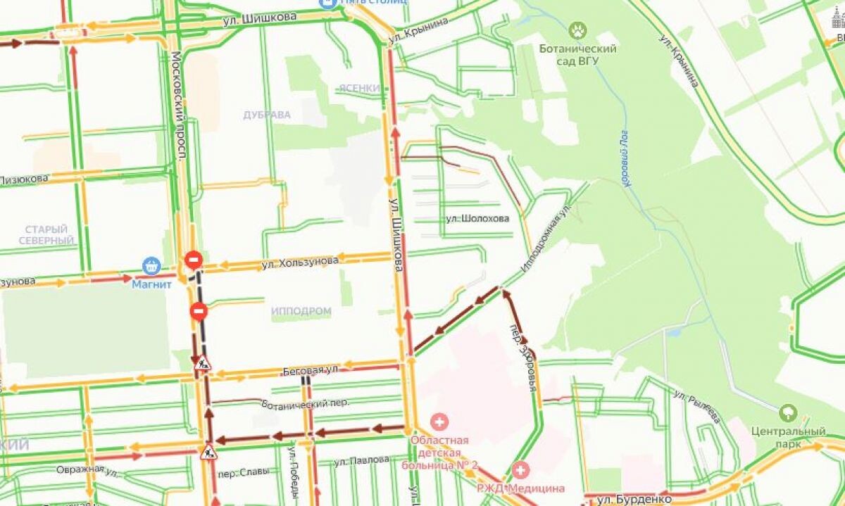 Из-за аварии на Московском проспекте воронежцы стоят в жутких пробках на соседних улицах