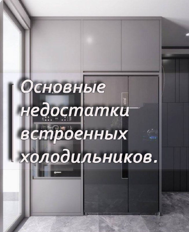 Встраиваемый холодильник – это интересное, современное и, прежде всего, стильное решение.🎩 Основное достоинство такого холодильника – его скрытость. 🪄Он присутствует, но словно отсутствует, так как снаружи видны лишь фасады мебели. 😁Однако на этом его преимущества заканчиваются. К сожалению, у него есть несколько недостатков, которые стоит учесть. 1️⃣▪️Первое и, пожалуй, самое главное. Полезный объем встраиваемого холодильника меньше по сравнению с обычным. Это может стать неожиданностью, но это факт! 📌Например, у встраиваемого холодильника объем может составлять 183/86 л., а у стандартного – 235/98 л. (холодильная/морозильная камеры). Разница налицо. Это связано с размерами. Стандартный холодильник обычно имеет габариты 60х60 см, тогда как для встраиваемого подходит шкаф с фасадами такого же размера, что делает сам агрегат меньше. 📐Плюс у встраиваемых моделей толще стенки из-за лучшей термоизоляции. 2️⃣▪️Второе. Цена встраиваемого холодильника выше, чем у обычного с таким ж