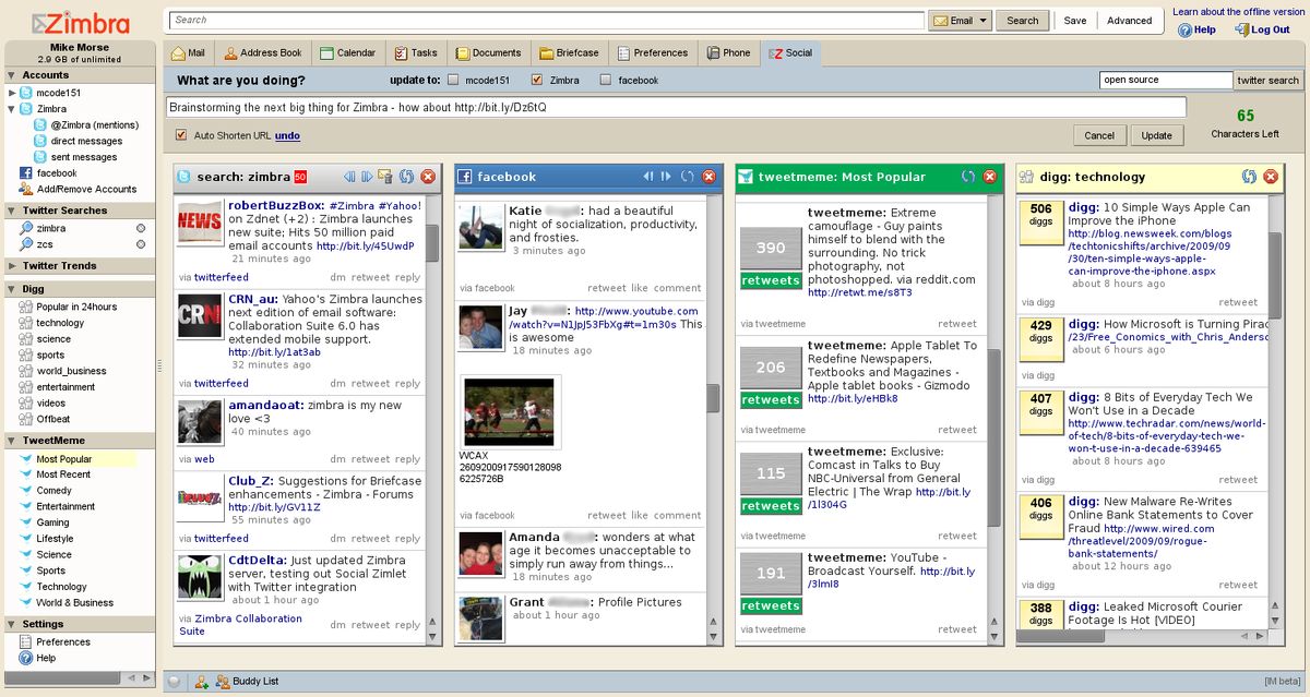 Как и интерфейс администрирования, веб-интерфейс для пользователей продуман и удобен. Zimbra выделяется среди других Linux-почтовых систем благодаря своему профессиональному веб-клиенту. Меню логичны и интуитивно понятны для тех, кто уже пользовался веб-почтой.