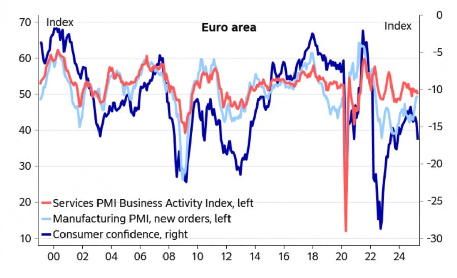 В целом настроения ухудшаются, индексы PMI сохраняют относительную стабильность, хотя и не растут, потребительская уверенность уходит дальше вниз.