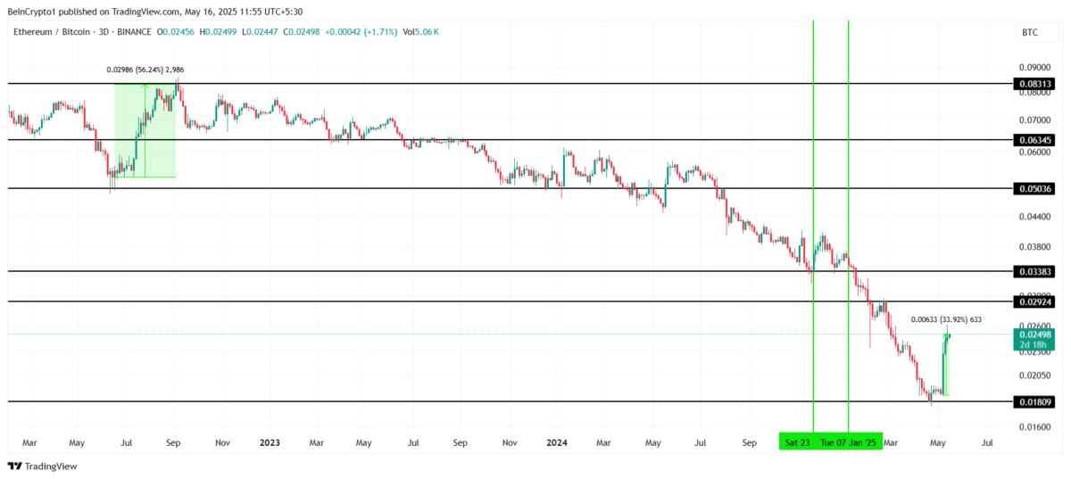 Пара ETH/BTC выросла на 34% за неделю — ждать ли сезона альткоинов