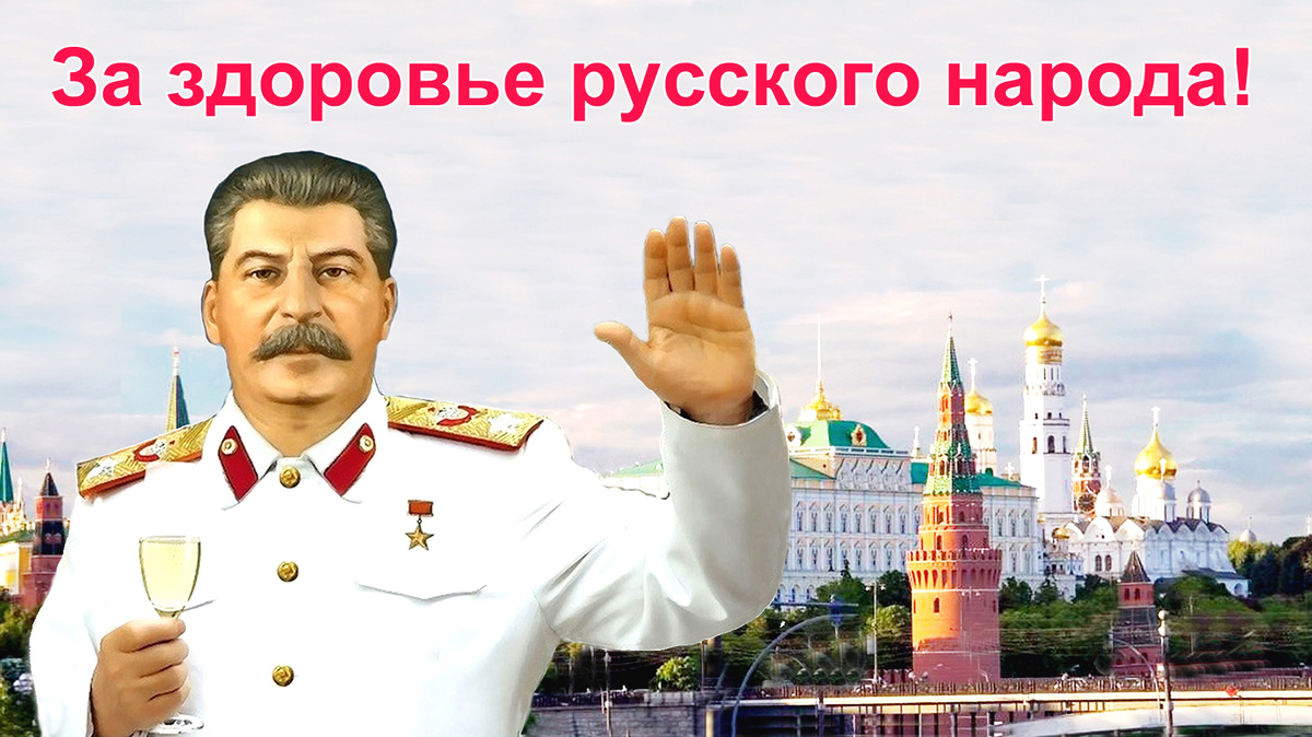 Я пью, прежде всего, за здоровье русского народа потому, что он является наиболее выдающейся нацией из всех наций, входящих в состав Советского Союза.