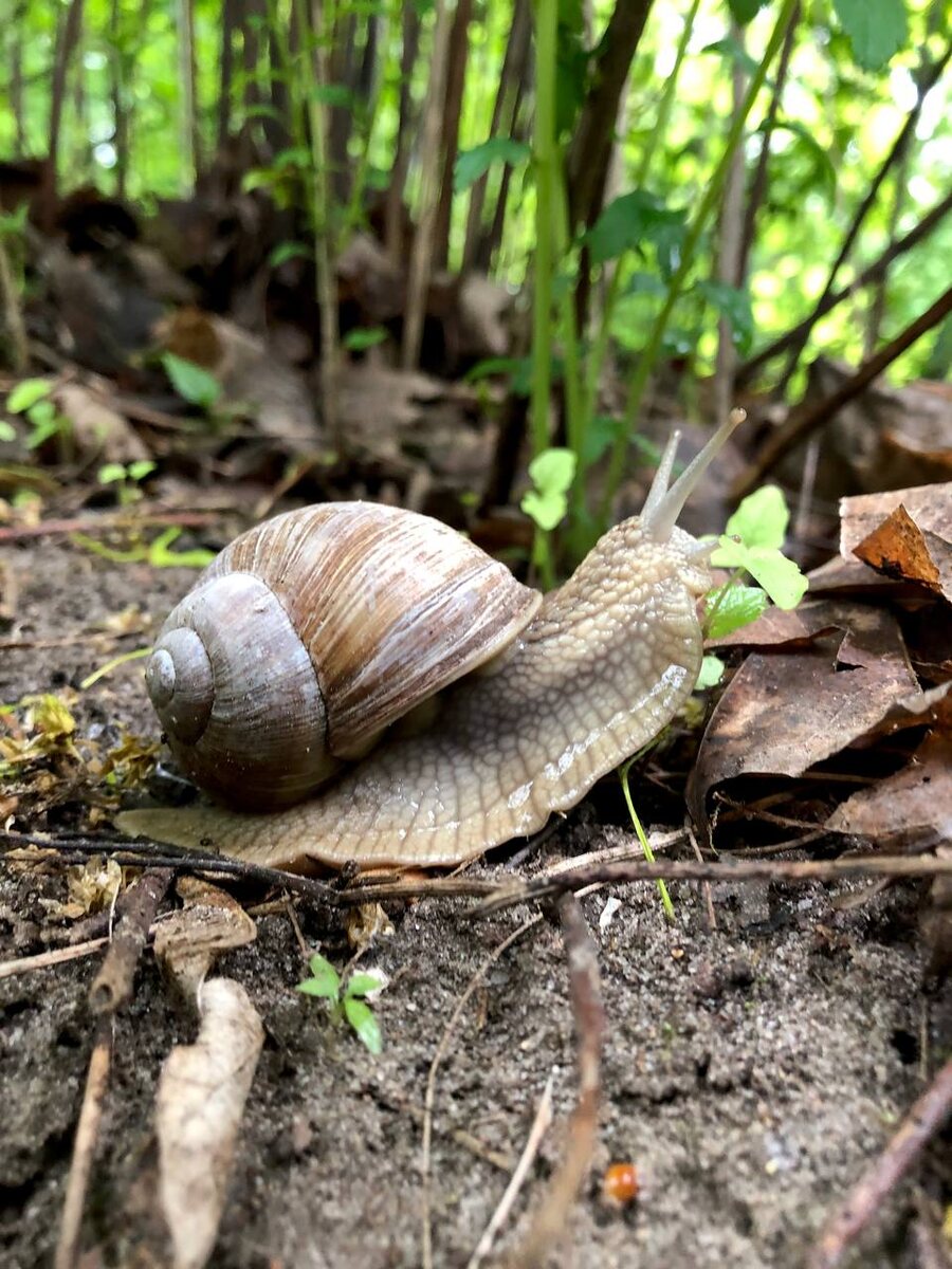 В усадьбе Пехра-Яковлевская разгуливают огромные улитки, отцвела красная яблоня, но набрала цветы сирень.