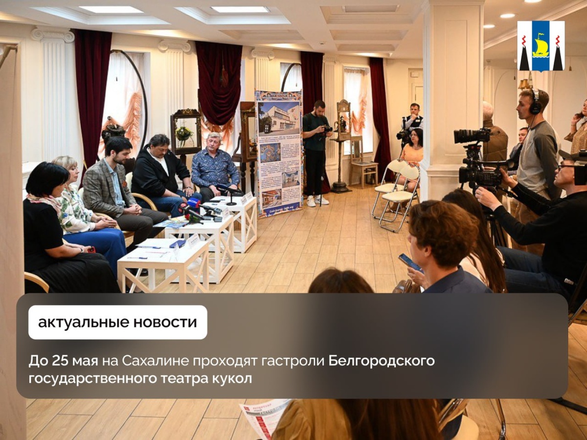 ✨ Первым событием в рамках гастролей стала пресс-конференция, на которой встретились представители двух театров. На Сахалин прибыла большая делегация — 21 человек: артисты, художники, операторы света и звука. Мы привезли 100 единиц багажа и готовы порадовать зрителей, — поделился главный режиссер Белгородского государственного театра кукол Павел Зимкин. 🎟 Белгородский театр представит 7️⃣ постановок для детей и взрослых — это будут как любимые русские народные и зарубежные сказки, так и произведения классиков и современных авторов. 📍 Все спектакли пройдут на большой и малой сценах Сахалинского театра кукол в рамках федеральной программы «Большие гастроли» при поддержке губернатора Сахалинской области. 📝 Программа «Большие гастроли» направлена на формирование, объединение и расширение общего культурного пространства России. Масштабные гастроли проходят с полноценными декорациями, костюмами и полным актерским составом спектакля. @mincult_sakh