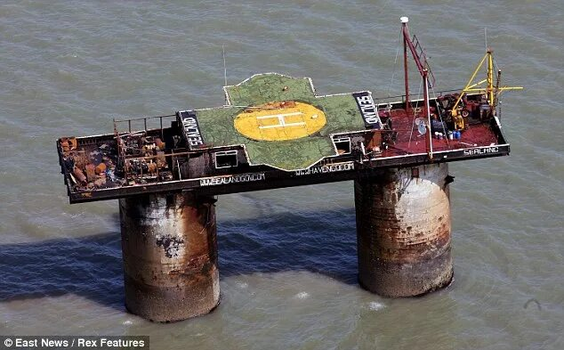 Его история началась еще во времена Второй мировой войны, когда Великобритания возвела в море четыре форта для защиты устья Темзы. Эти сооружения, по сути, были огромными бетонными башнями, соединенными сверху металлической платформой. Там размещались ПВО и жили сотни солдат. Но когда война закончилась, форты опустели и превратились в морских призраков.