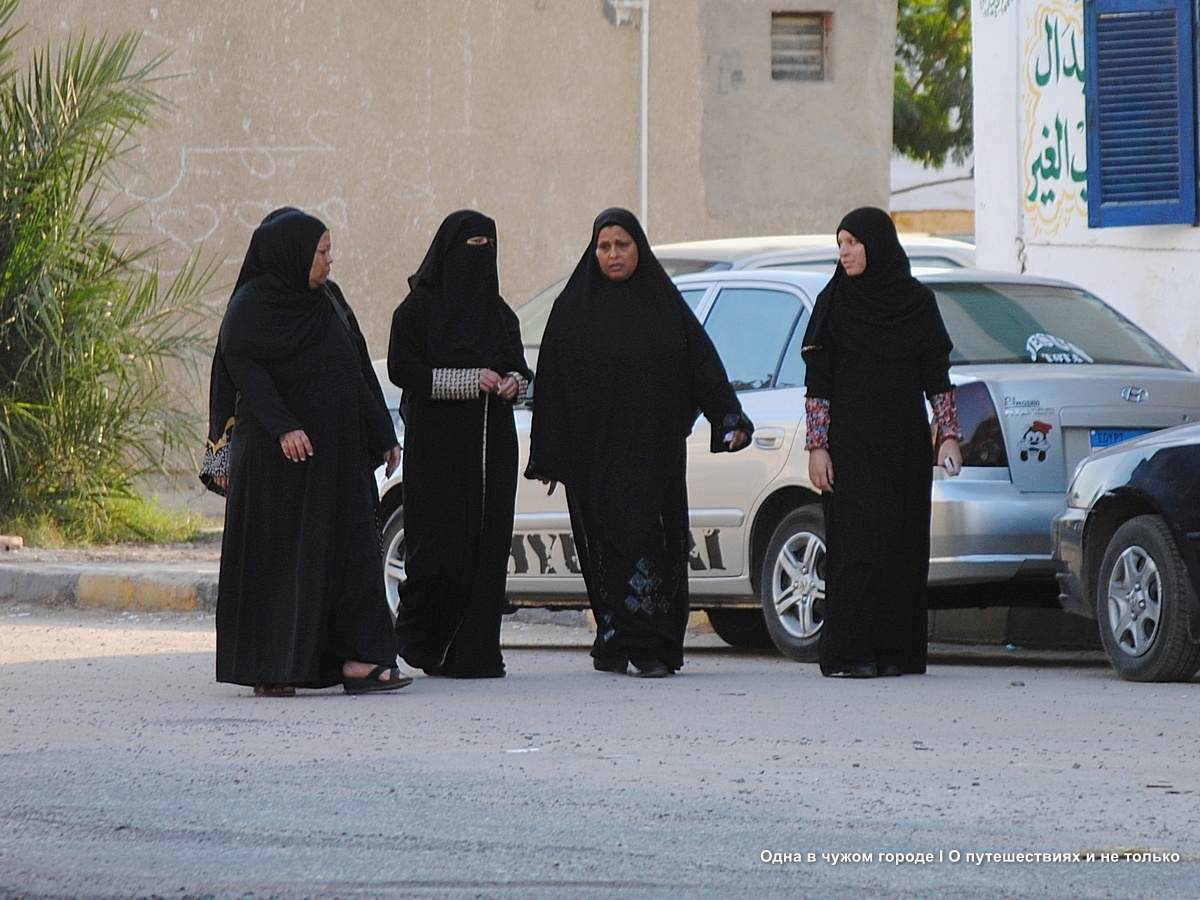 В нашей культуре принято, что мужчины в большинстве своем носят немаркую одежду темных оттенков, а женщины – яркую, светлую, разноцветную. Особенно это заметно летом. В Египте же все наоборот: традиционная одежда мужчин-египтян - длинная, до пят, рубашка из сукна (галабея или тауб – в разных частях страны её называют по-разному) светлых оттенков, а женская одежда – темная, часто черная, однотонная, иногда с небольшой узорчатой отделкой. Молодые девушки могут позволить себе разбавить образ джинсами, ярким пояском или платком, а вот замужние дамы придерживаются строгого дресс-кода. Почему так сложилось, не знает никто. Одни женщины считают, что одеваться так предписывают религиозные традиции, другие – что это помогает избежать назойливого внимания местных мужчин. Те же в свою очередь утверждают, что черные одеяния - лучший способ удержать женщину дома, так как под палящим солнцем, они нагреваются намного сильнее, чем одежда светлых тонов, а значит, женщина долго на улице не задержится.