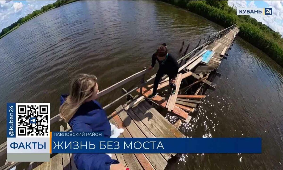 Видео канала «Кубань 24» Аварийная конструкция длиной 170 м соединяет две части станицы Украинской. Мост возвели еще в советское время. По обоим берегам стоят жилые дома, но объекты социальной инфраструктуры находятся на разных сторонах реки. Представители местной администрации рассказали, что для учащихся работает автобусный маршрут до школы и обратно. Уточняется, что разрушающийся мост является самовольной постройкой, возведенной более 45 лет назад без необходимой документации. Поэтому юридически сооружение не существует, что делает невозможным его официальный ремонт. Жители станицы Украинской давно просят построить новую переправу в удобном месте. Альтернативный маршрут по асфальтированной дороге увеличивает путь на 1,5-2 км в одну сторону. В Павловской администрации отметили, что строительство нового моста — дорогостоящий проект, непосильный для районного бюджета. Поэтому тротуар, который также предстоит построить, остается единственной безопасной дорогой для местных жителей. «Буде