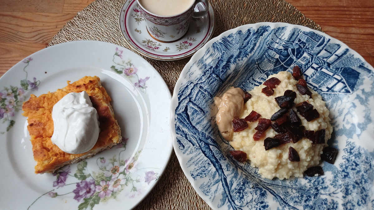 Завтракаем пшенной кашей на топленом молоке, к каше в тарелку добавила ложку арахисовой пасты и шоколадную курагу. Плюс кусок тыквенно-творожной запеканки со сметаной и чашка эспрессо Обед такой же, как и вчера: азиатский суп с гречневой лапшой, курицей и яйцом, руккола с карпаччо из свеклы (приправила бальзамиком, оливковым маслом, посыпала семечками) Сегодня удалось забрать два бесплатных чикенбургера в "Точке" - была акция от Теле2, проходит только по понедельникам. Так что сын еще на обед съел чикенбургер. А я попозже с кофе На ужин приготовила грибной жюльен. На гарнир к нему отварная гречка и пряный салат из "лент" моркови и огурца со специями Гречки сварила побольше, как обычно - для того, чтобы и на завтрак нам ее хватило. Меню год назад Разбираем бюджет по полочкам. Пример бюджета семьи из 5 человек Грибной жюльен на сковороде